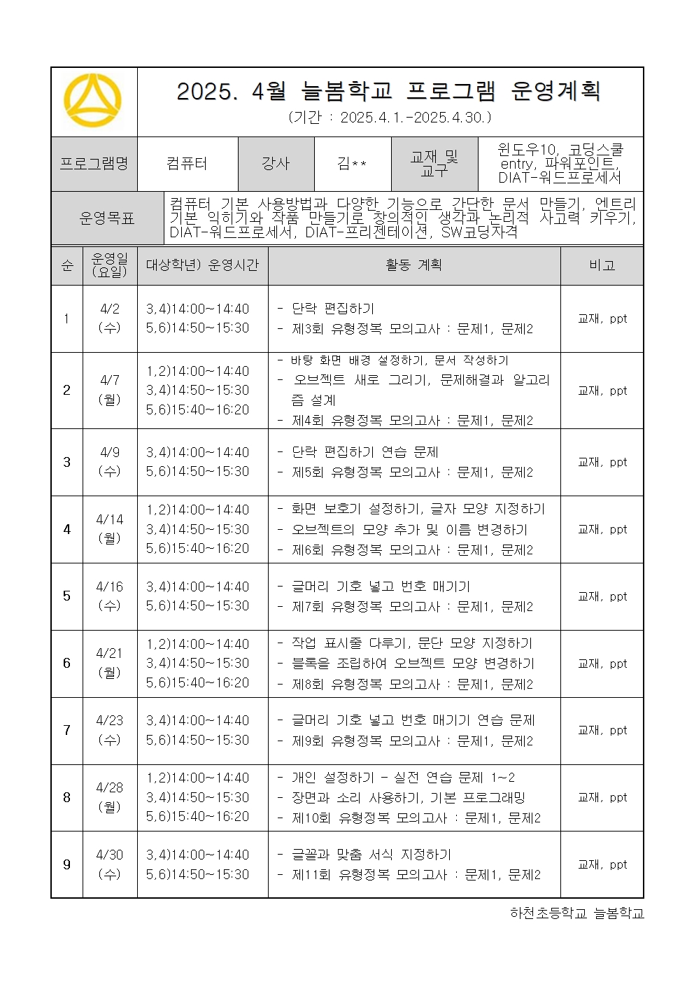 2025. 4월 운영계획 - 컴퓨터