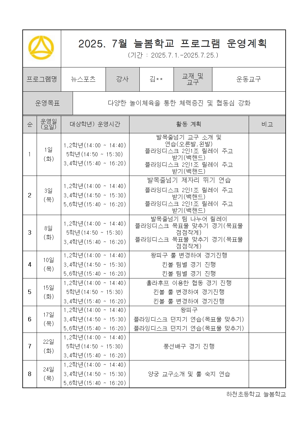 2025. 7월 운영계획 - 뉴스포츠