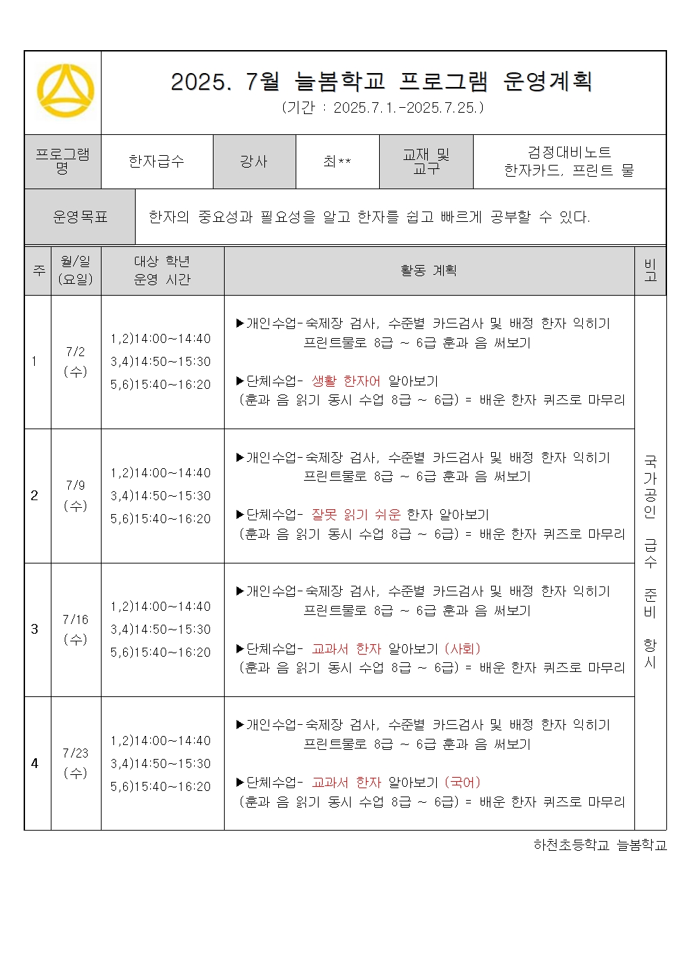 2025. 7월 운영계획 - 한자