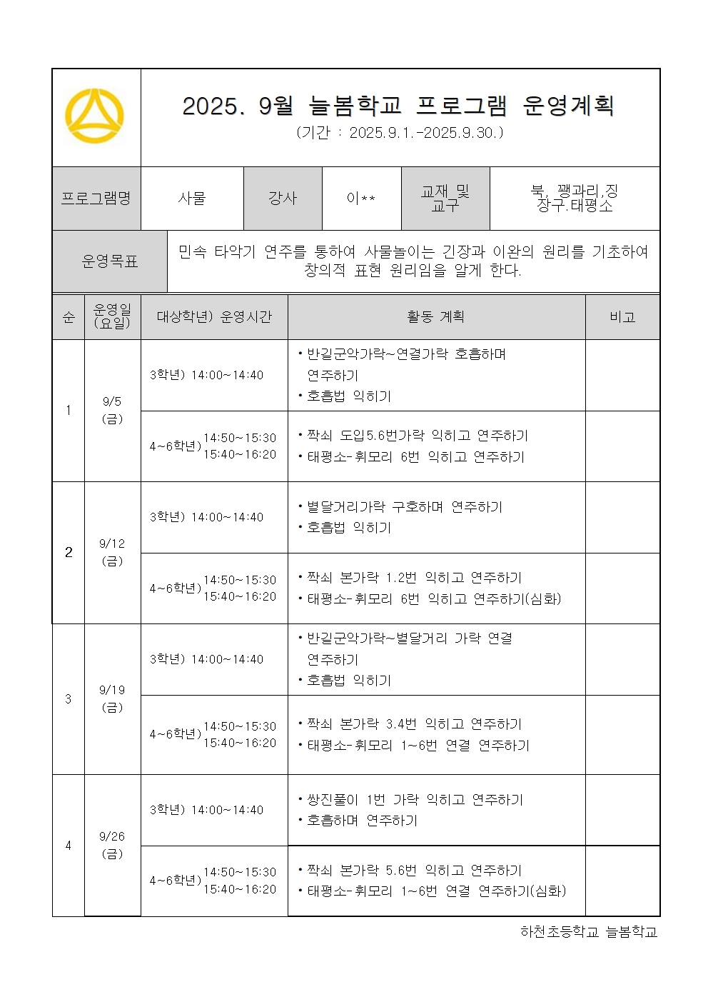 * 해당 게시물은 '돌봄·방과후학교 > 맞춤형•방과후학교 > 월별운영계획서' 게시판에서 이동되었습니다.