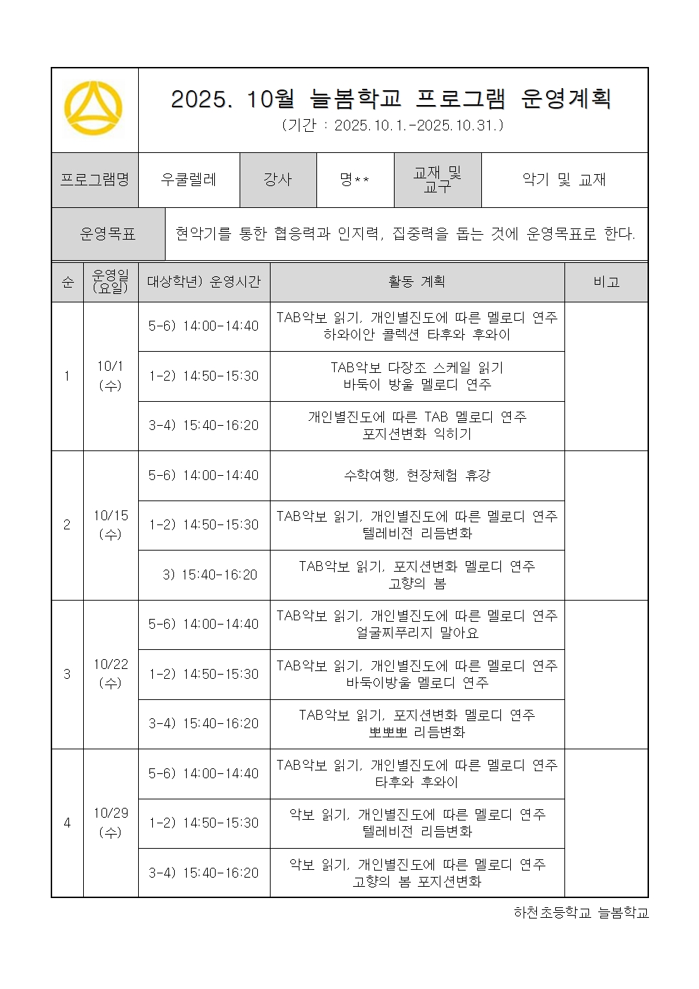 2025. 10월 운영계획 - 우쿨렐레