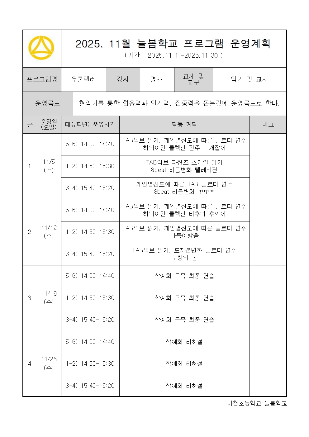 2025. 11월 운영계획 - 우쿨렐레