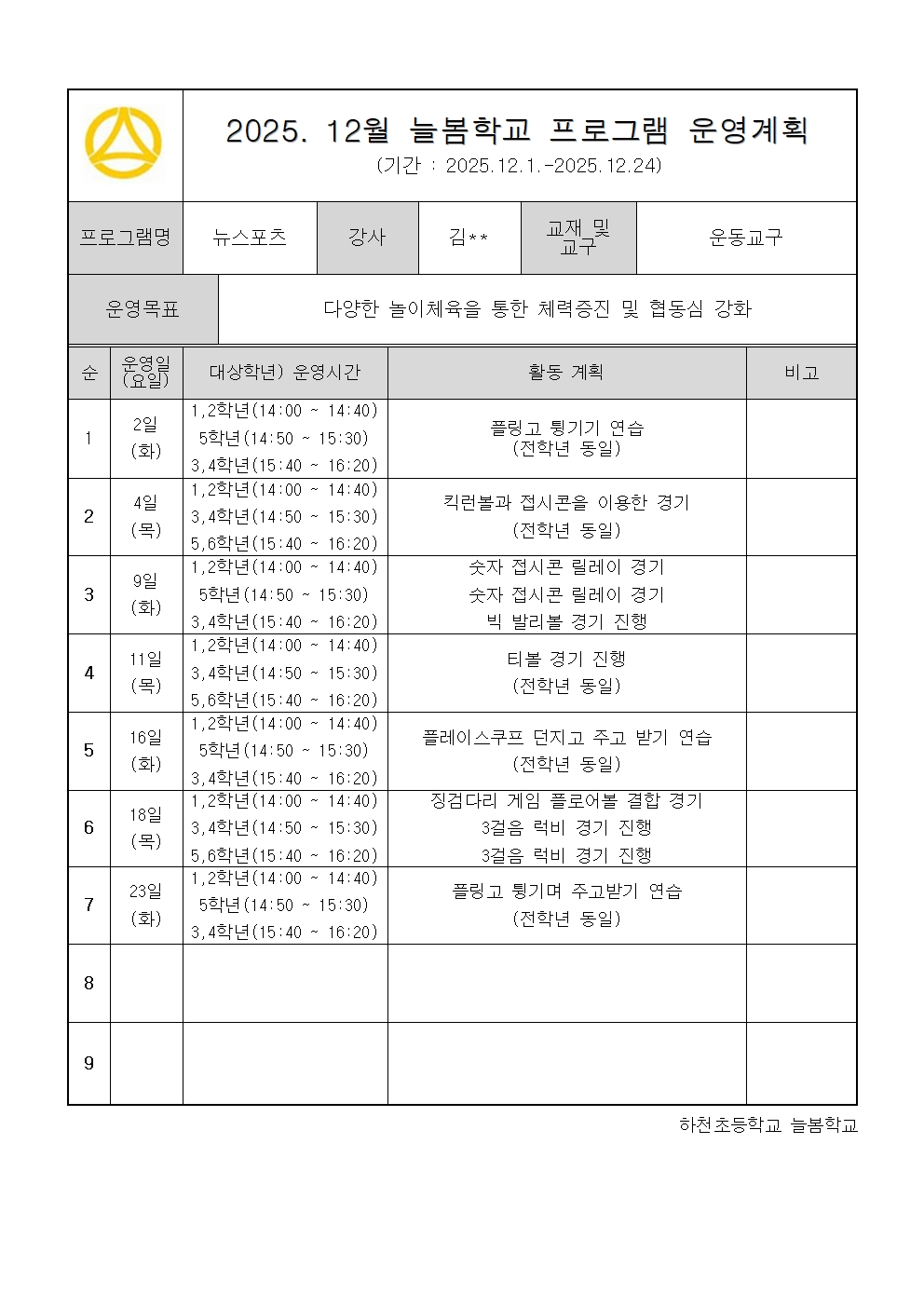 * 해당 게시물은 '돌봄·방과후학교 > 맞춤형•방과후학교 > 월별운영계획서' 게시판에서 이동되었습니다.